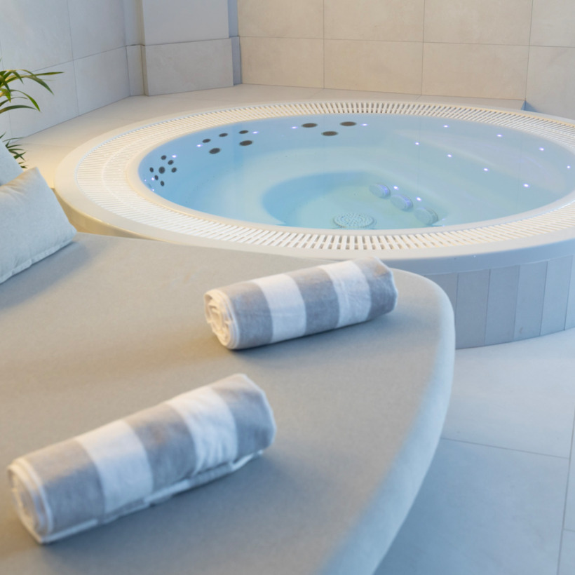 Po chwili aktywności warto zrelaksować się w jacuzzi dla ośmiu osób, oferującym masaże wodne i powietrzne, które rozluźniają ciało i odprężają umysł. Uzupełnieniem tej strefy jest miejsce do leżakowania z podgrzewaną podłogą, sprzyjające błogiemu odpoczynkowi.